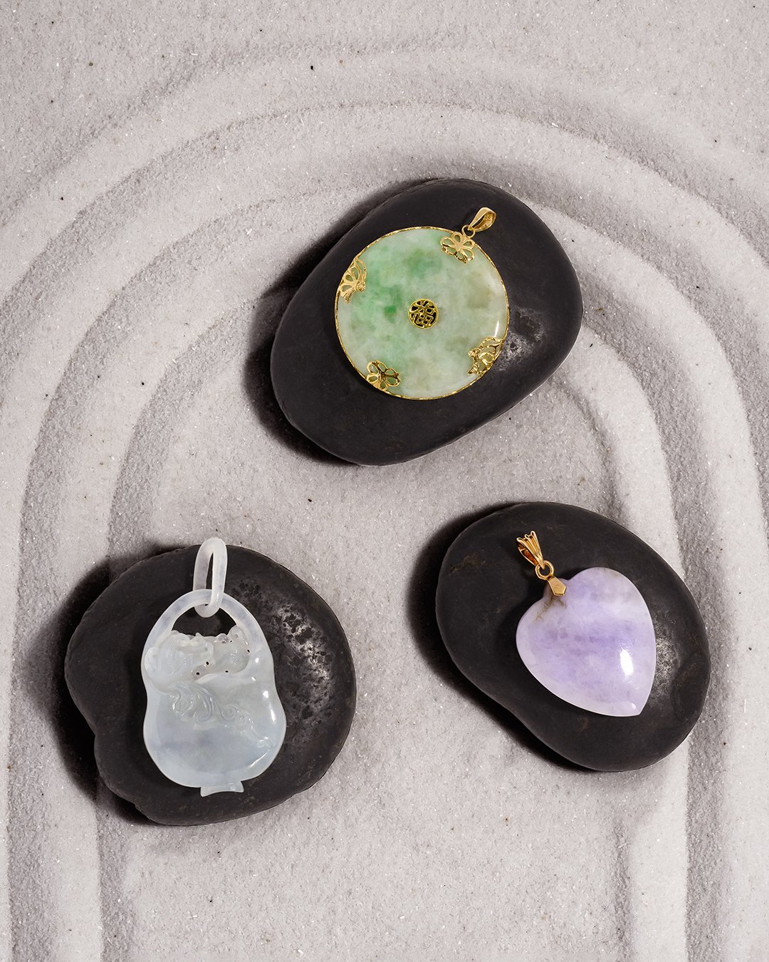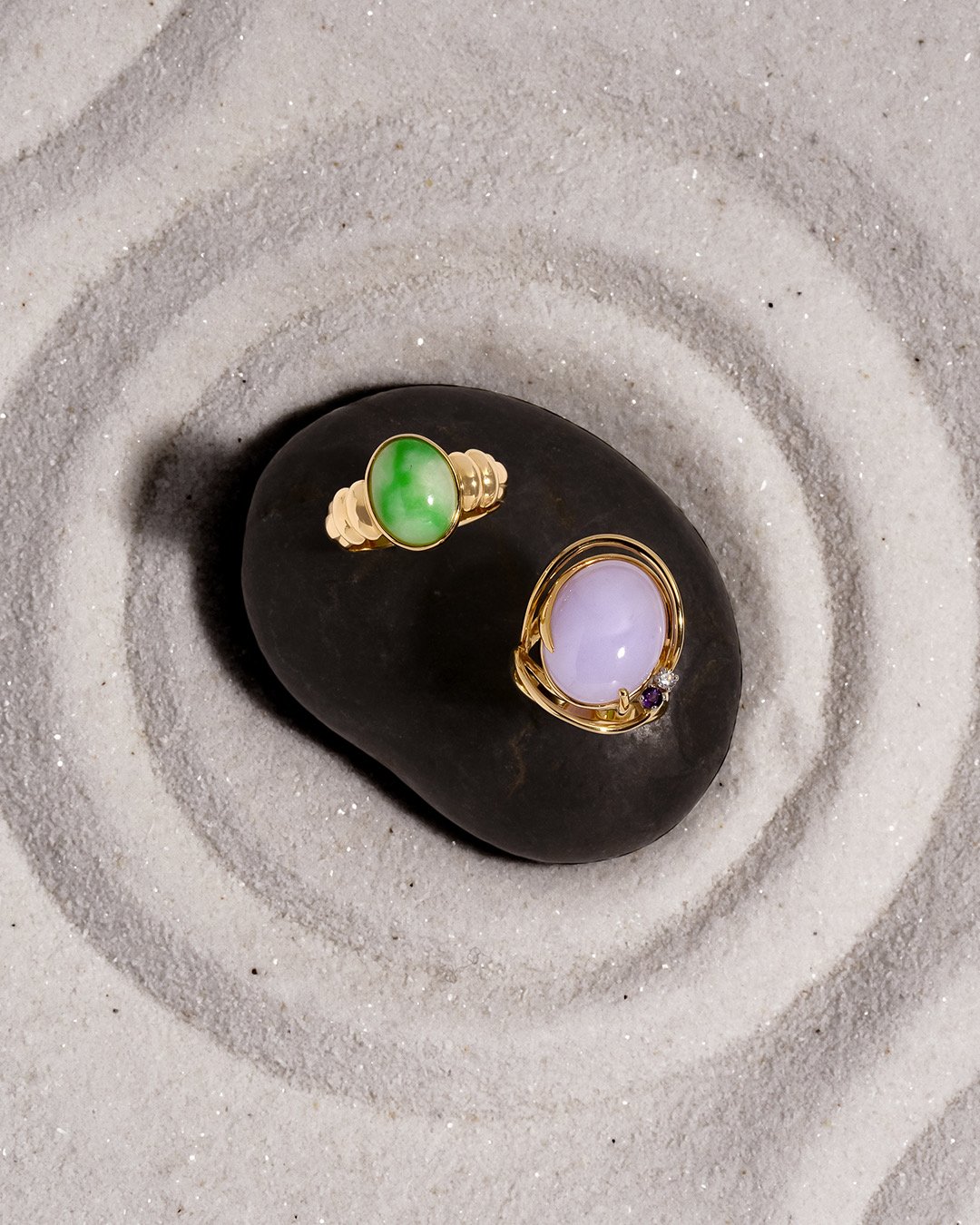 An editorial concept that frames vintage and estate jade jewelry within a minimalist, Zen garden-inspired environment. The series was designed to evoke a sense of calm and emphasize the beauty of the jade.