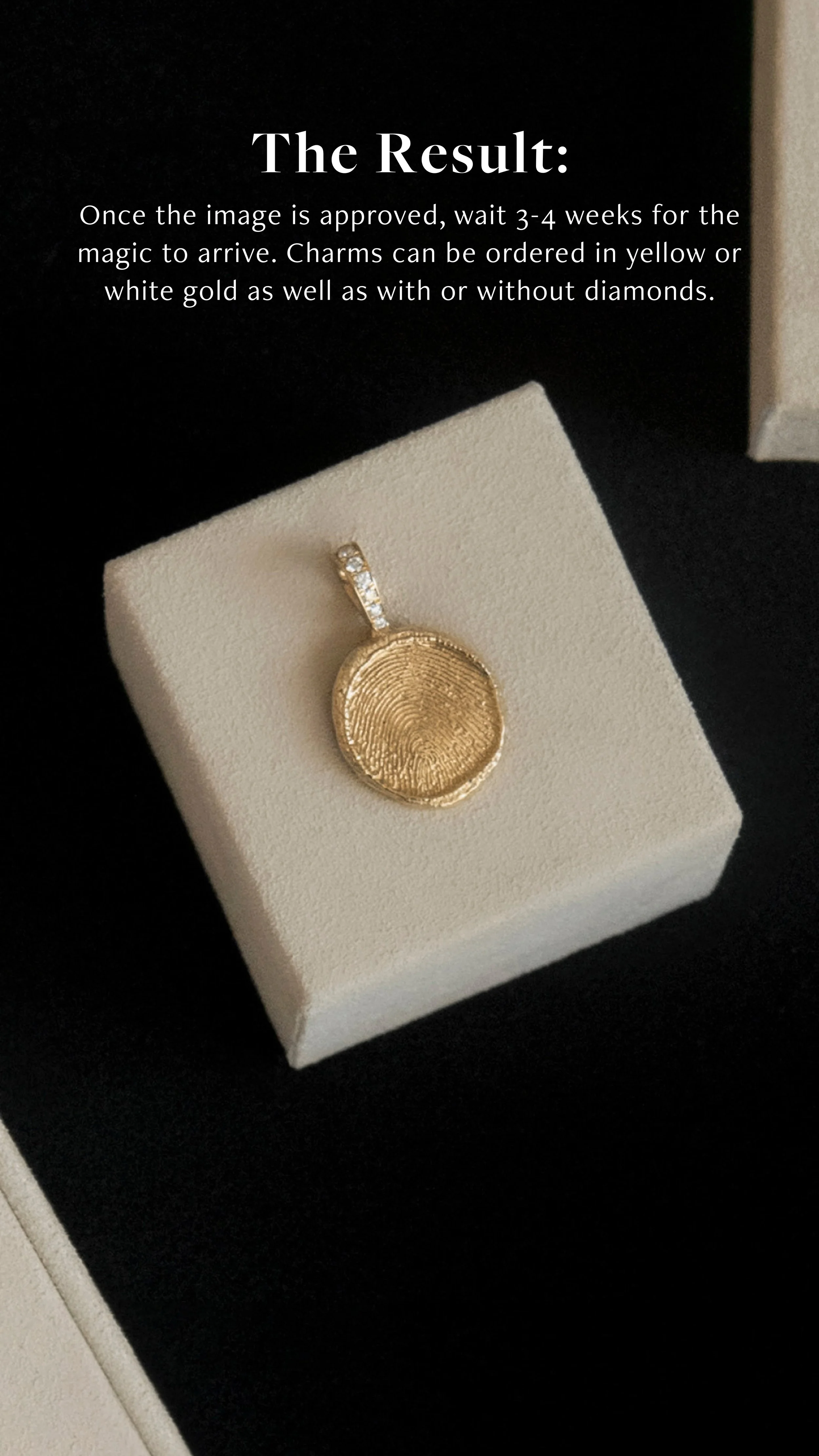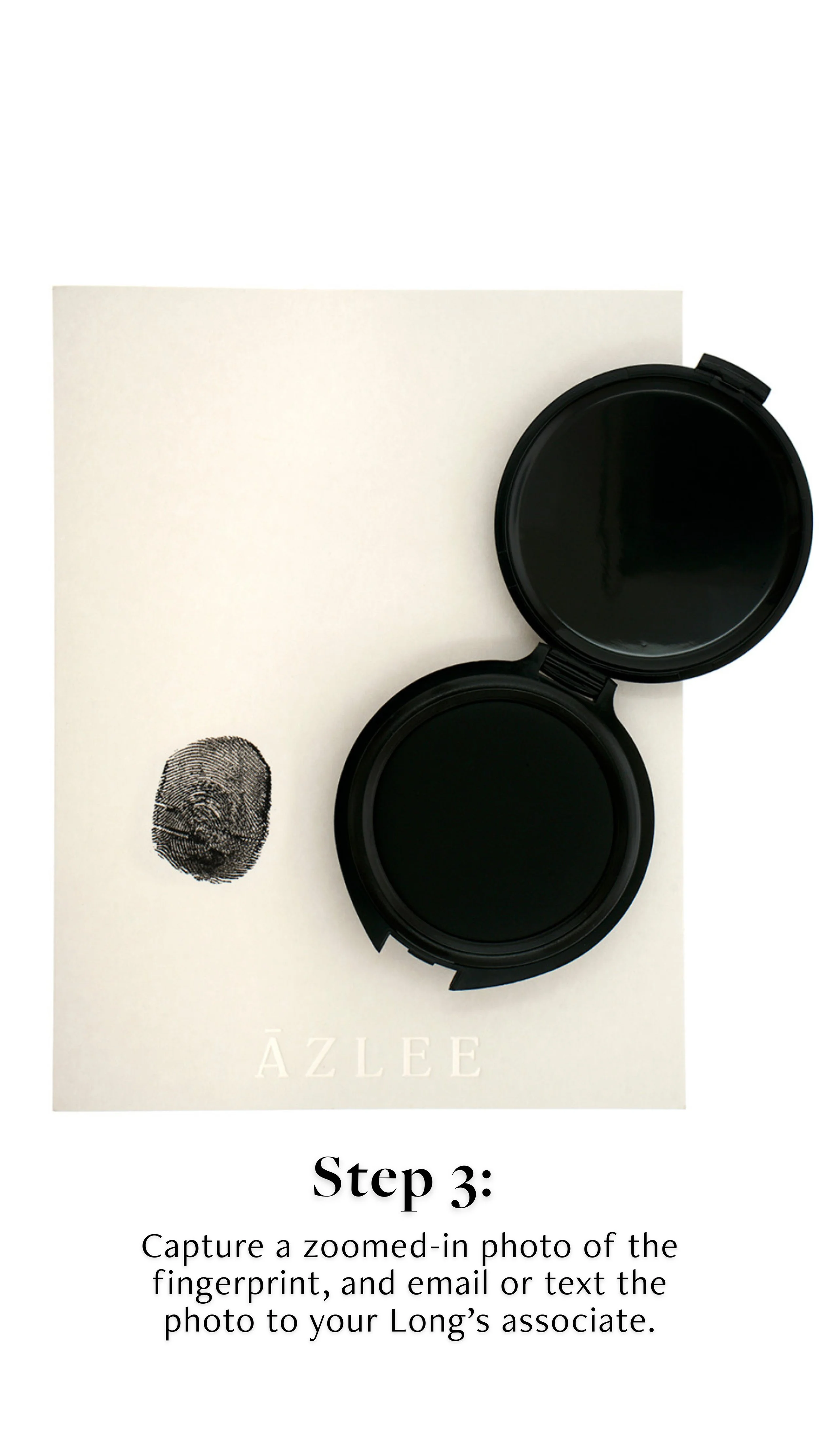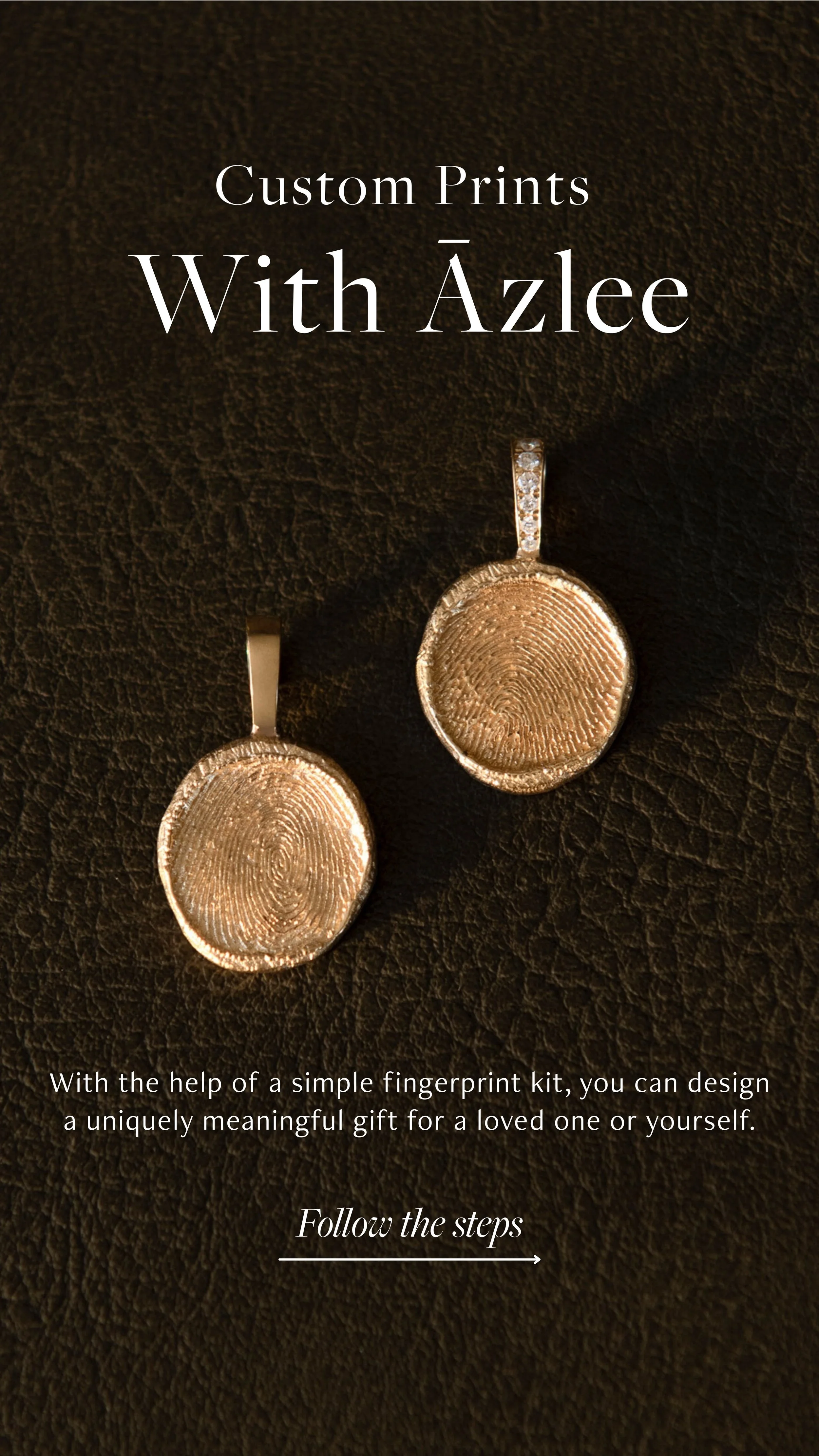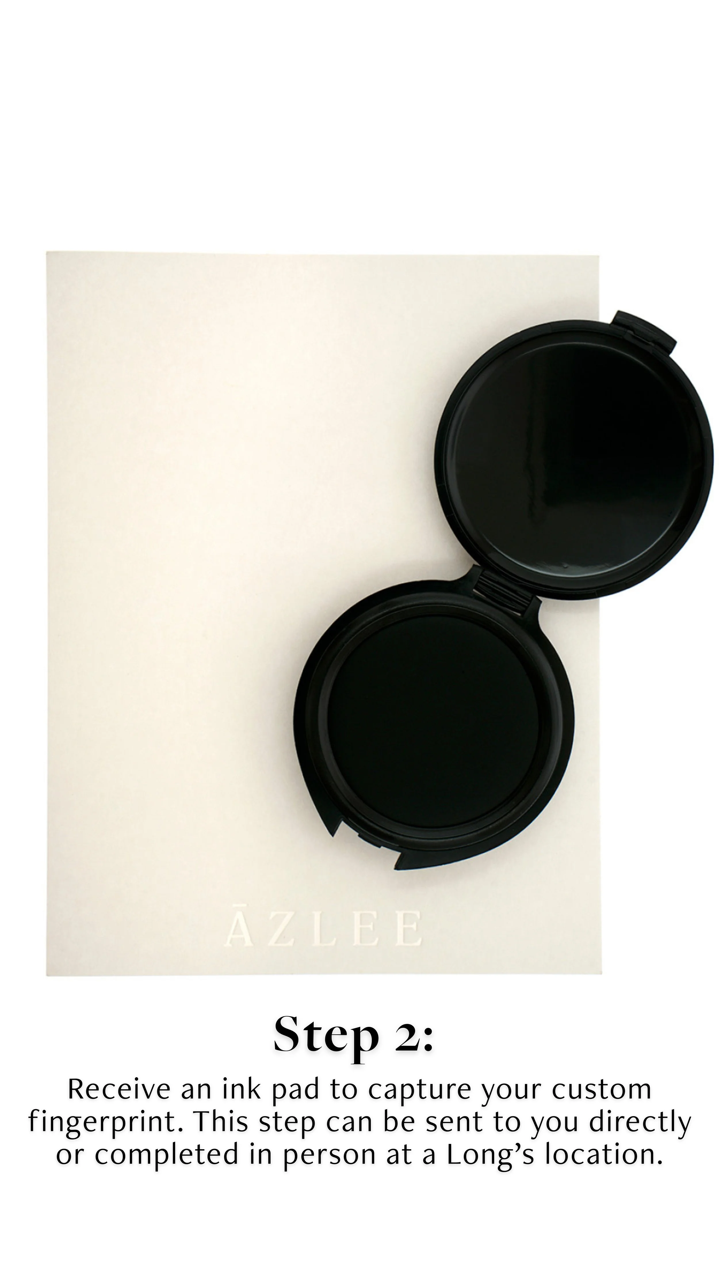 Evergreen Instagram Stories content created to support Āzlee's custom fingerprint charm program at Long's Jewelers. The series walks customers through the ordering process across five sequential slides — from initial contact through to the finished piece.